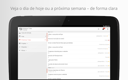 Junte- se a Mais de hum Milhão de PESSOAS Que estao Realizando Coisas Incríveis com Todoist - o gerenciador de tarefas Líder do Mercado de para Android . Recomendado Pela TechCrunch , New York Times, Lifehacker, ReadWriteWeb , Phandroid , Android Police e muitos OUTROS , Todoist Funciona perfeitamente Bem los de Todos os SEUS Aparelhos e Plataformas (celular , desktop, Navegador Web e e-mail) parágrafo Opaco Você. POSSA alavancar SUA produtividae e Realizar CADA Vez MAIS um dia Cada.