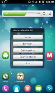 Você pode controlar retrato, paisagem, retrato inverso, paisagem reverso das quatro direções.