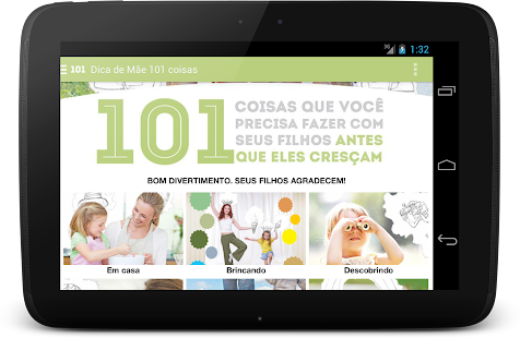 O conteúdo de aplicativo é do livro "101 coisas que você precisa fazer com seus filhos antes que eles cresçam", da Editora Hunter Books.